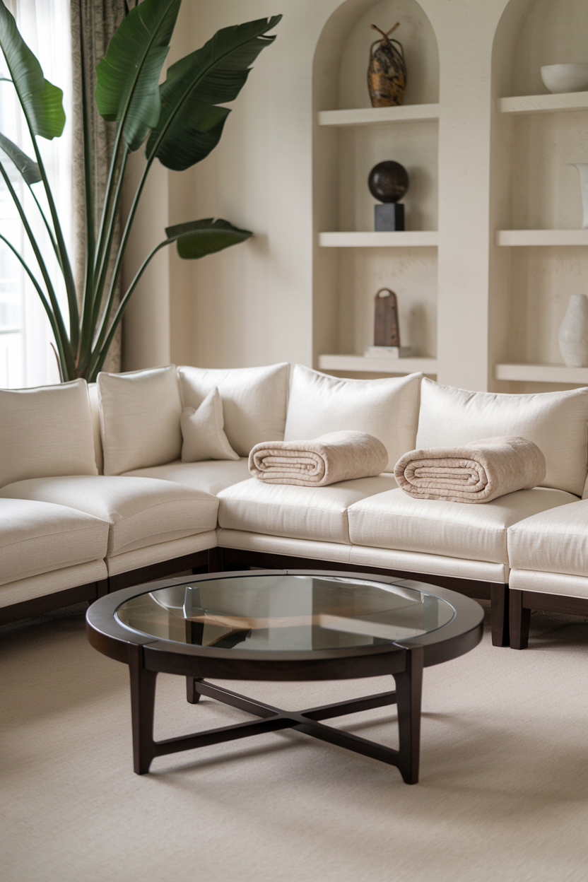 You know those impossibly soft throws you find in luxury hotels that make you want to take an afternoon nap? That’s exactly what you want for your living room. Go for high-quality materials like cashmere, alpaca, or thick woven cotton. Drape it over the back of your sofa or fold it neatly in a basket. It’s a small detail, but it instantly makes the room feel more inviting and upscale.