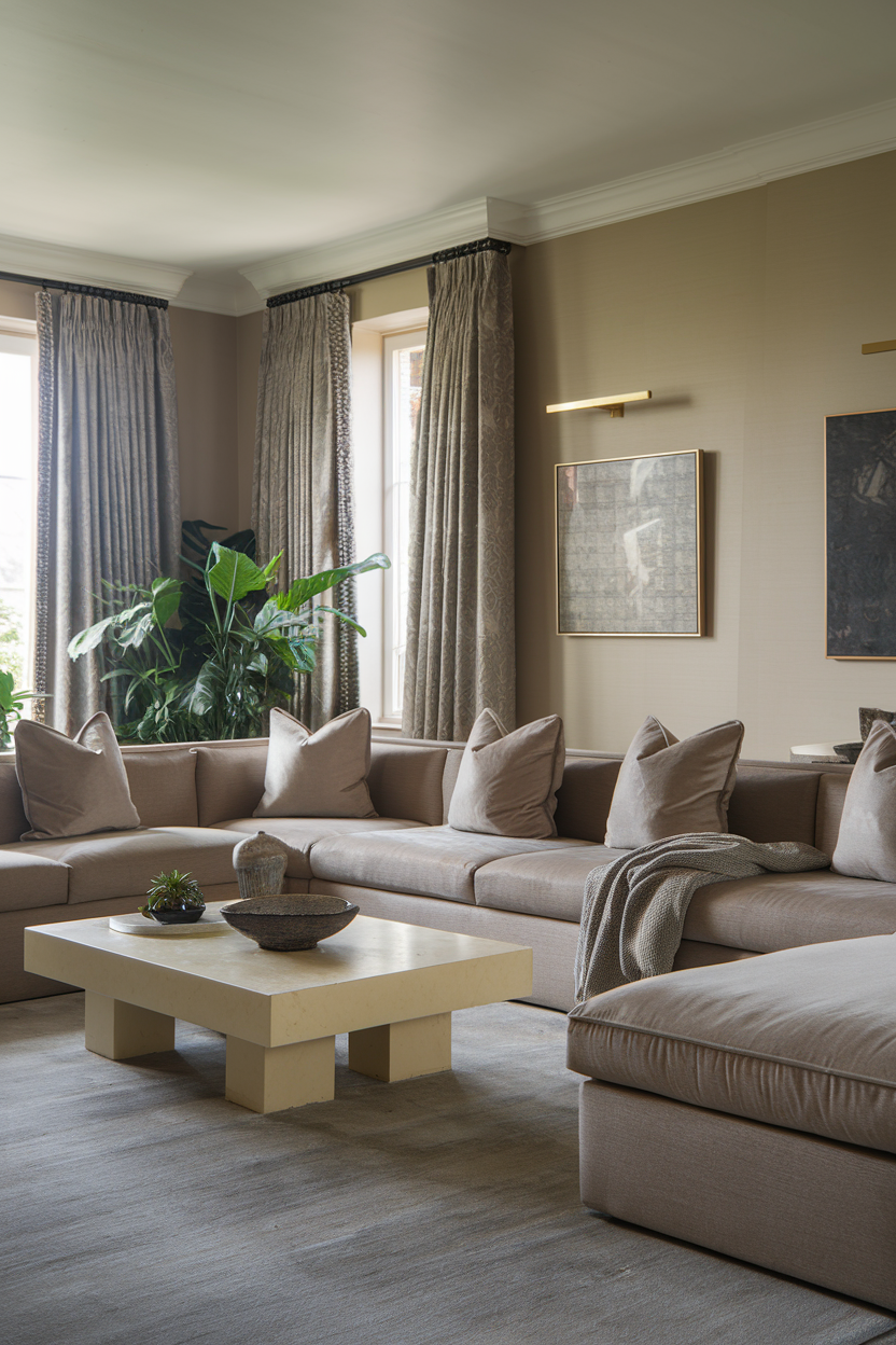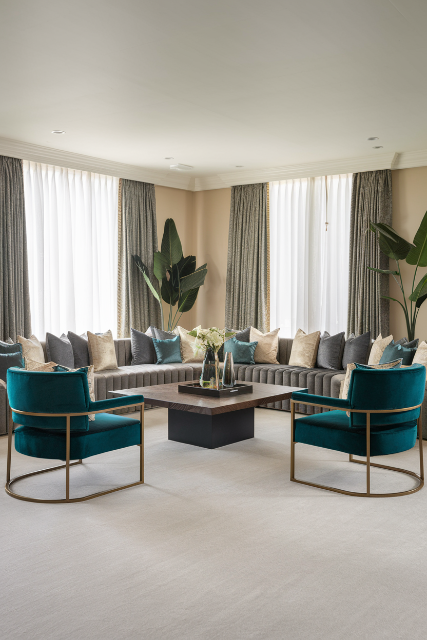 Nothing says “luxury” quite like a deep, plush velvet sofa. It’s got that rich sheen and soft-to-the-touch texture that just makes you want to sink in with a fancy cocktail. Go for jewel tones like emerald green or sapphire blue for a bold statement, or stick with a soft champagne tone for understated elegance. The beauty of velvet is that it looks high-end without being unapproachable. Bonus tip: add a couple of oversized cushions with gold accents to really push the hotel-level glamour.