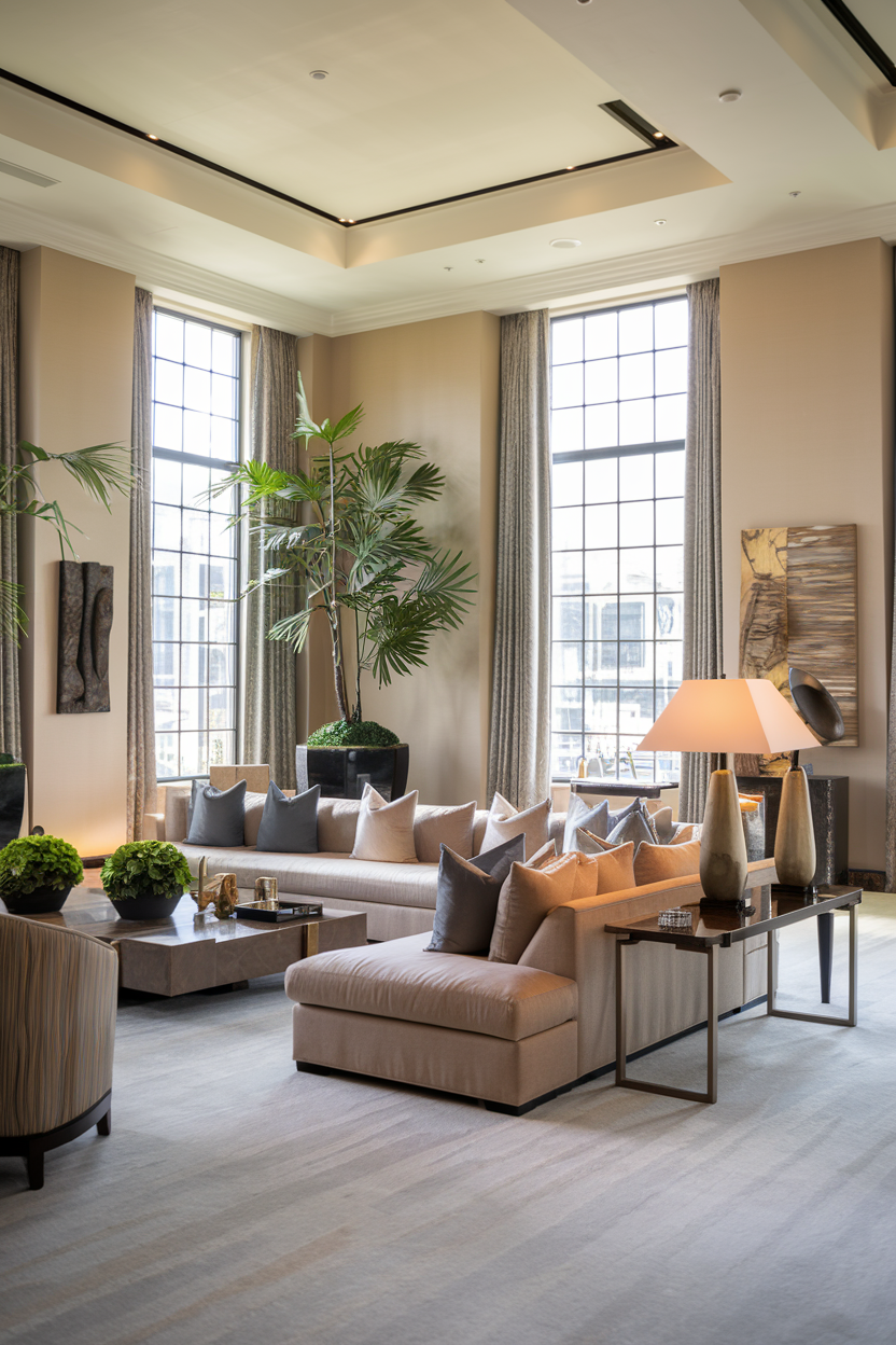 One of the hallmarks of luxury hotel design is a soothing, neutral color palette. Think warm creams, soft grays, and sandy beiges. These tones create a calming backdrop and allow your furniture and decor to stand out. Plus, they’re timeless, which means your living room will look chic for years to come. If you’re worried about it feeling too plain, just add texture through rugs, cushions, and throws.