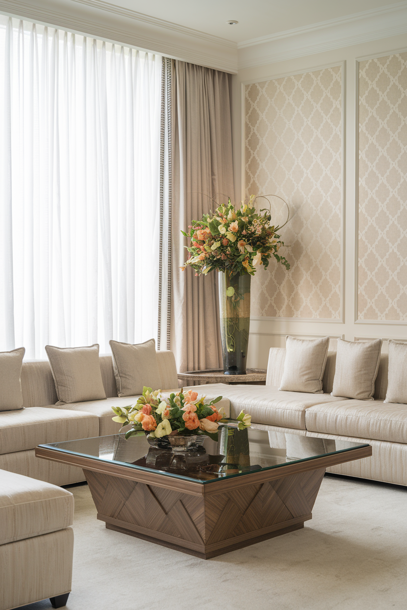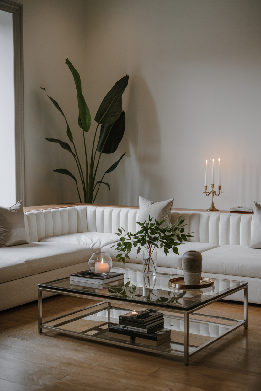 Nothing beats the cozy elegance of candlelight. Hotels often use it in lobbies and lounges to create a soft, romantic glow that makes you want to linger. Invest in a few high-quality candles in elegant holders, and group them on a tray for an instant focal point. Choose scents that are subtle yet sophisticated — think sandalwood, jasmine, or fig — so your living room not only looks luxurious but smells like it too.