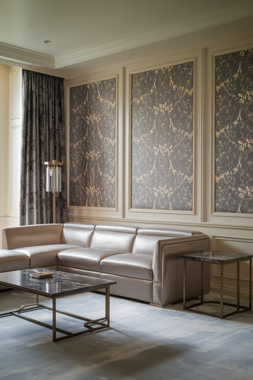 A textured wallpaper or sleek wall paneling can completely change the mood of your living room. Hotels often use this trick to add depth and visual interest without relying solely on furniture. You could go for grasscloth for a natural, understated elegance, or metallic patterns for a more glamorous touch. Even a single accent wall can make a big impact without overwhelming the space.
