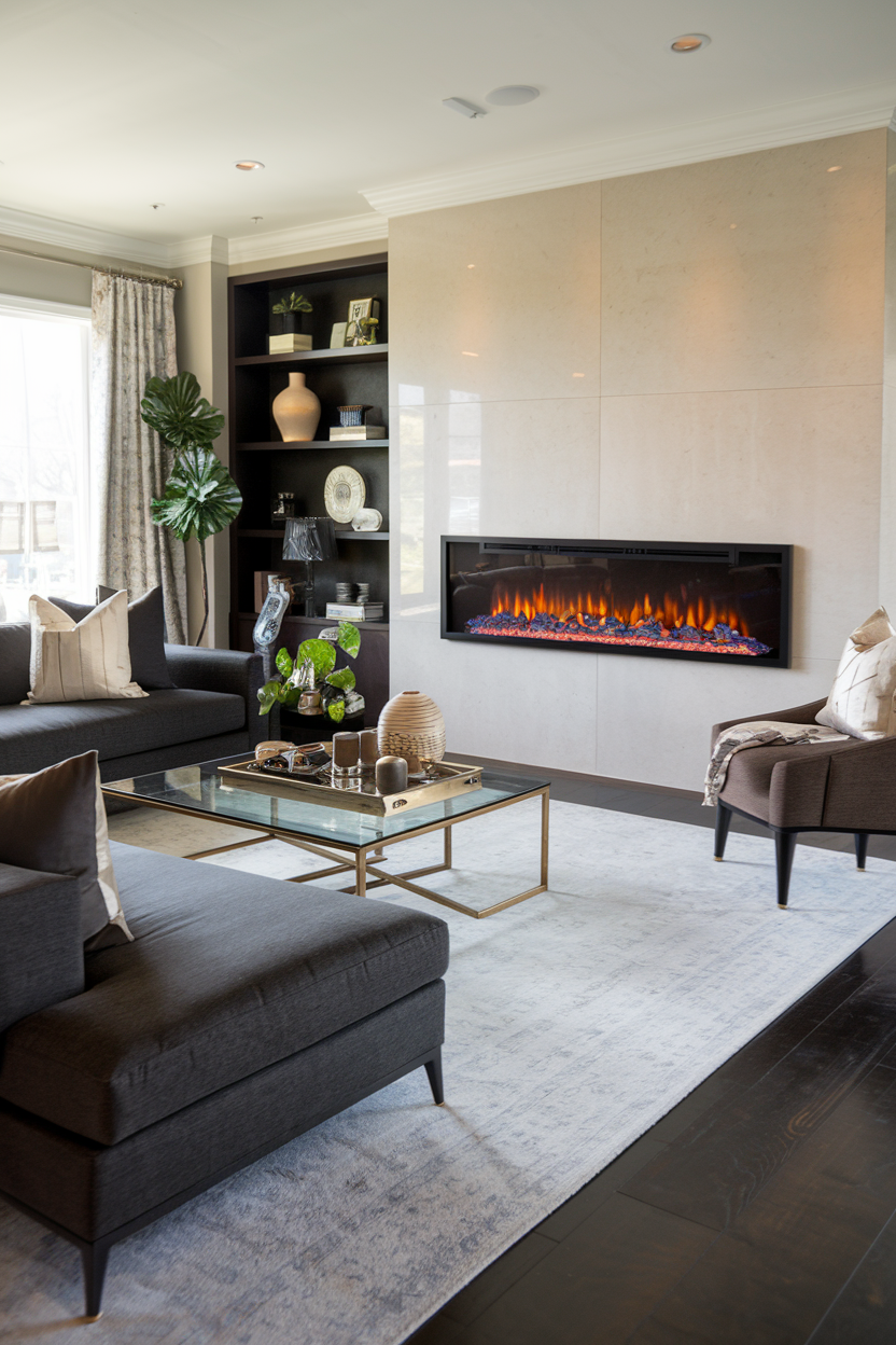 A fireplace instantly adds a sense of luxury and warmth, both literally and figuratively. If you have the real deal, lucky you — style it with a gorgeous mantel and an oversized mirror above. If not, an electric fireplace can still create that same inviting effect. Hotels often use them as focal points in their lounges, and you can do the same at home to create a cozy gathering spot.
