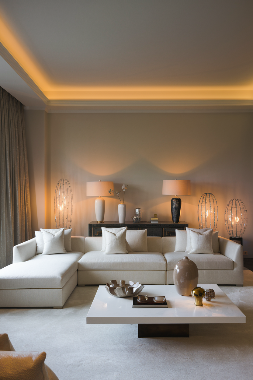 Ever notice how luxury hotels never rely on just one overhead light? That’s because lighting is the secret sauce for a high-end feel. Try layering your lighting with a mix of floor lamps, table lamps, and maybe even a chandelier for a little drama. Warm, soft bulbs make the whole room feel more inviting, while dimmers let you set the perfect mood. It’s like giving your living room its own light show every evening.