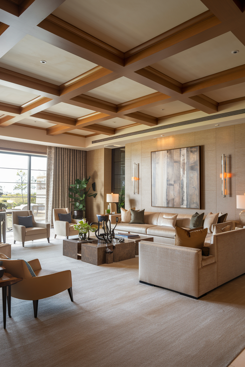 Look up — your ceiling is basically a blank canvas begging for a little attention. Coffered ceilings, decorative molding, or even a bold paint color can add unexpected luxury. Some high-end hotels even use subtle metallic sheens overhead to reflect light beautifully. This is a detail most people overlook, but once you elevate the ceiling design, the whole room feels more intentional and upscale.