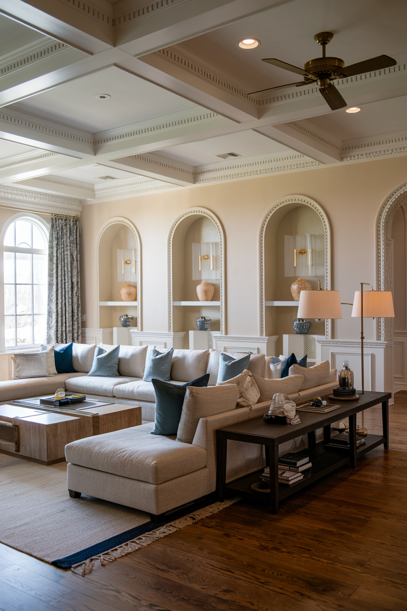 Crown molding, arched doorways, or built-in niches are the kinds of architectural touches that make a living room feel custom and expensive. While some might require a bigger renovation, even smaller updates like adding trim to plain walls can create a more refined look. Hotels often design with these details in mind to subtly elevate the atmosphere, and you can borrow the same approach for your home.
