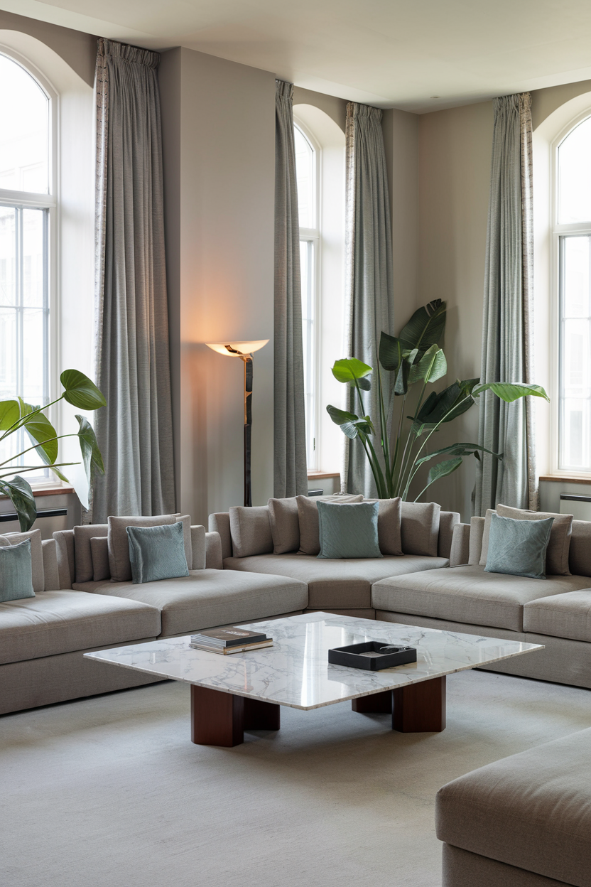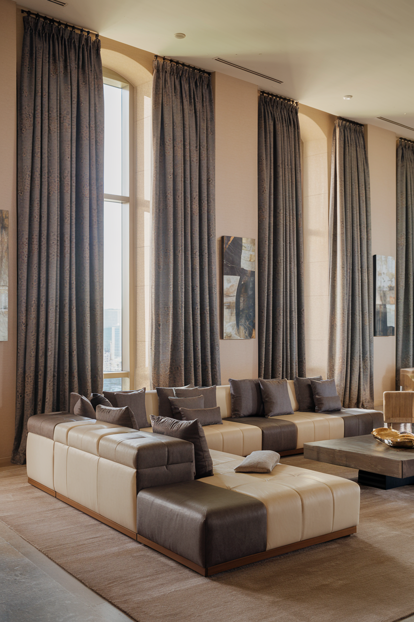 Want to make your living room feel grander in about five minutes? Install floor-to-ceiling curtains. Even if your windows are not that tall, mounting the curtain rod higher than the frame will give the illusion of height. Choose rich fabrics like silk, velvet, or heavy linen for that hotel-luxury look. Keep them in a solid color for a clean, sophisticated vibe, or go with subtle patterns for a little personality.
