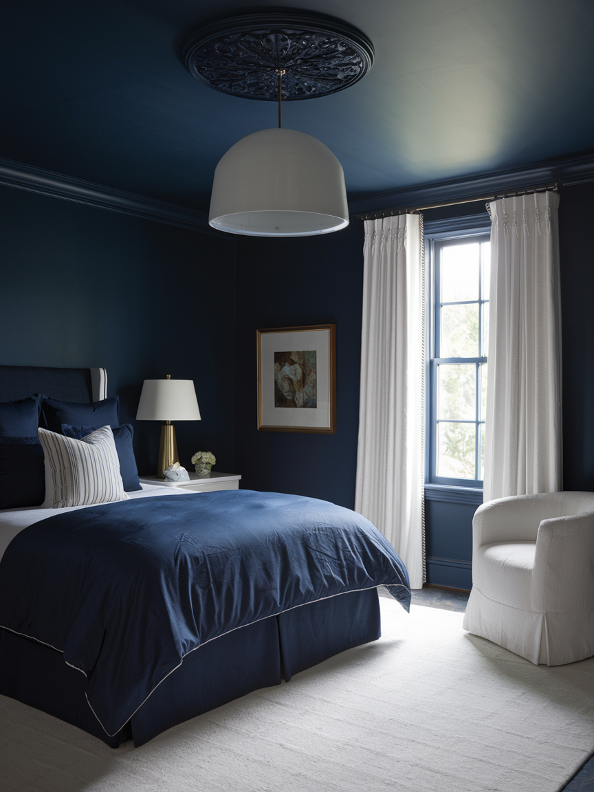 10. Navy Ceiling for an Intimate Cocoon Effect