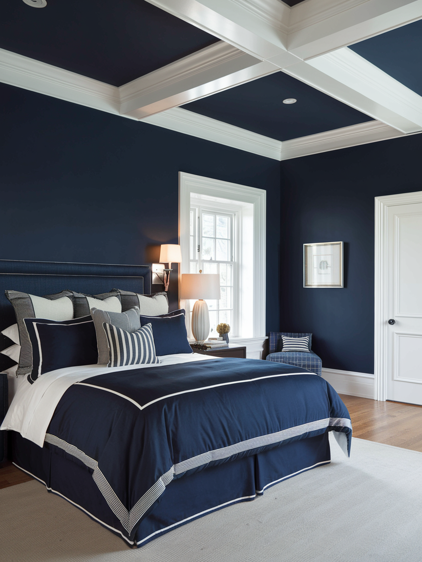 11. Navy Bedroom with Crisp White Trim