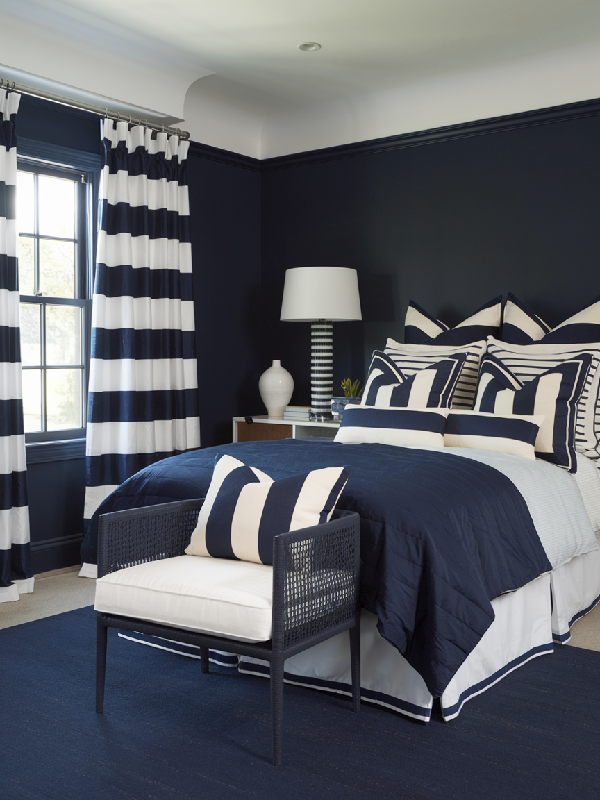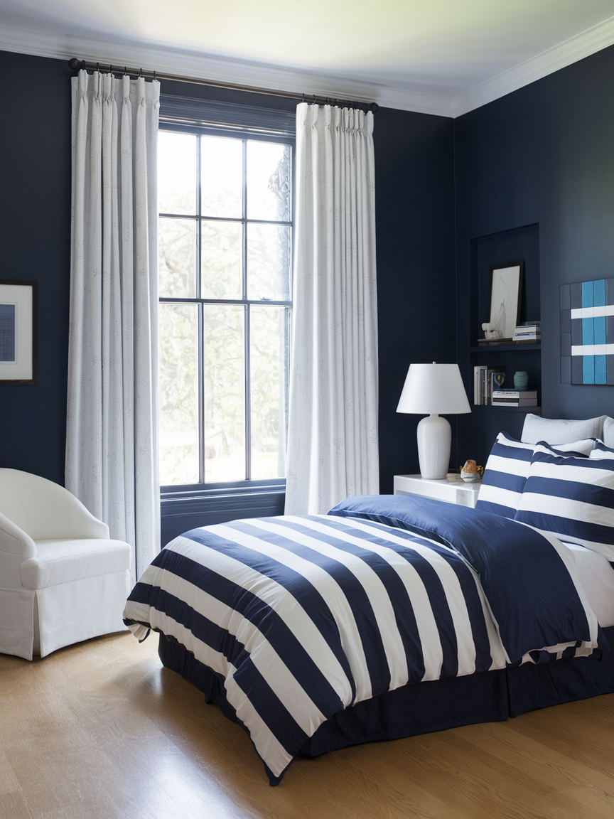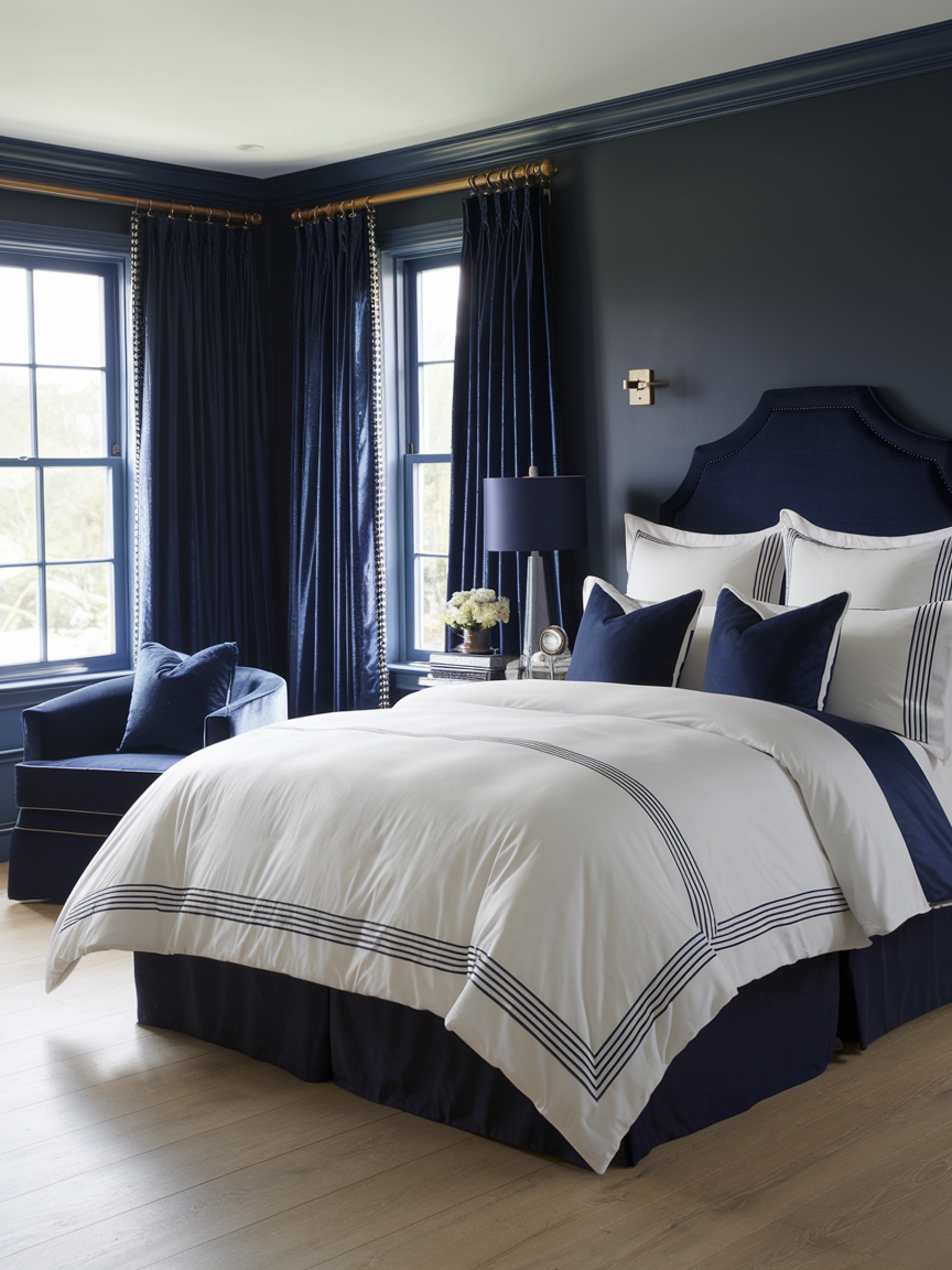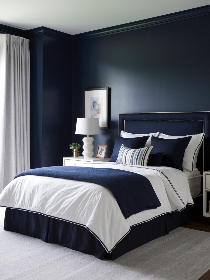 2. Navy and White Bedroom for Timeless Elegance