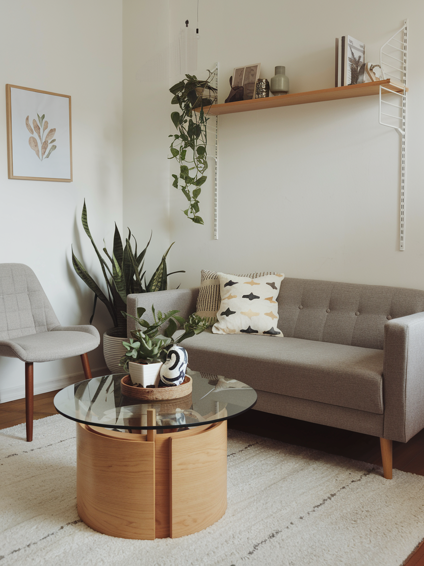 Choosing a small or multi-purpose coffee table ensures flow in a compact living room. Opt for round tables to soften the edges of the space or nesting tables that can be tucked away when extra room is needed. Tables with storage options double as a place for books, remotes, or decorative items. A well-chosen coffee table anchors the seating area while maintaining an open, airy feel, perfect for a small apartment layout.