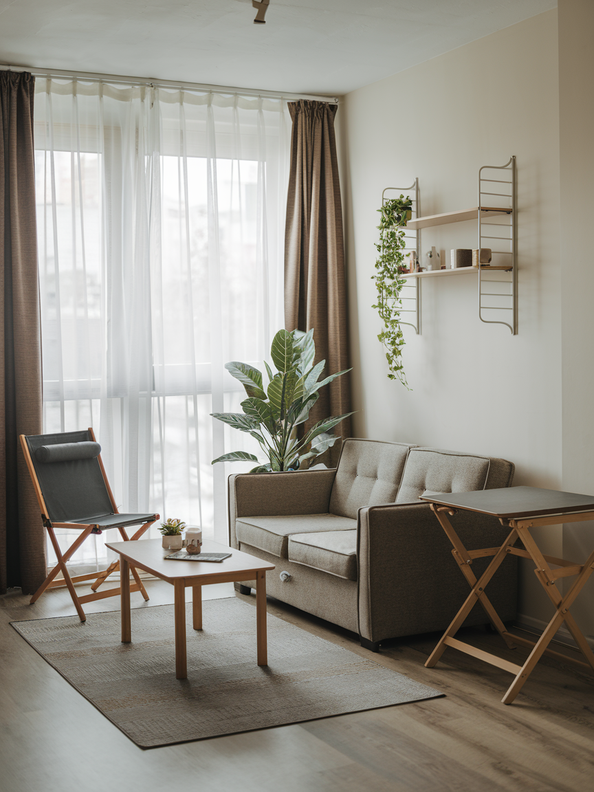 Foldable chairs, stackable stools, or collapsible tables are lifesavers in a small apartment. They provide extra seating when needed and can be stored away when not in use. This flexibility ensures your living room remains uncluttered and adaptable for different situations, whether hosting friends, working from home, or enjoying a quiet evening. Foldable furniture is a practical solution that maintains both comfort and style.