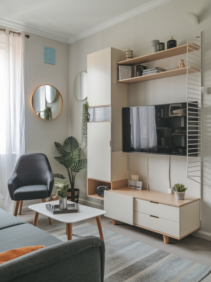 Opt for storage solutions with a slim profile, such as tall bookshelves, floating cabinets, or narrow sideboards. These units make the most of vertical space while keeping floor space open. Use closed cabinets for hidden clutter and open shelving for display items. Slim storage units help maintain a clean, organized environment while adding visual height, making your living room feel more spacious and thoughtfully arranged.