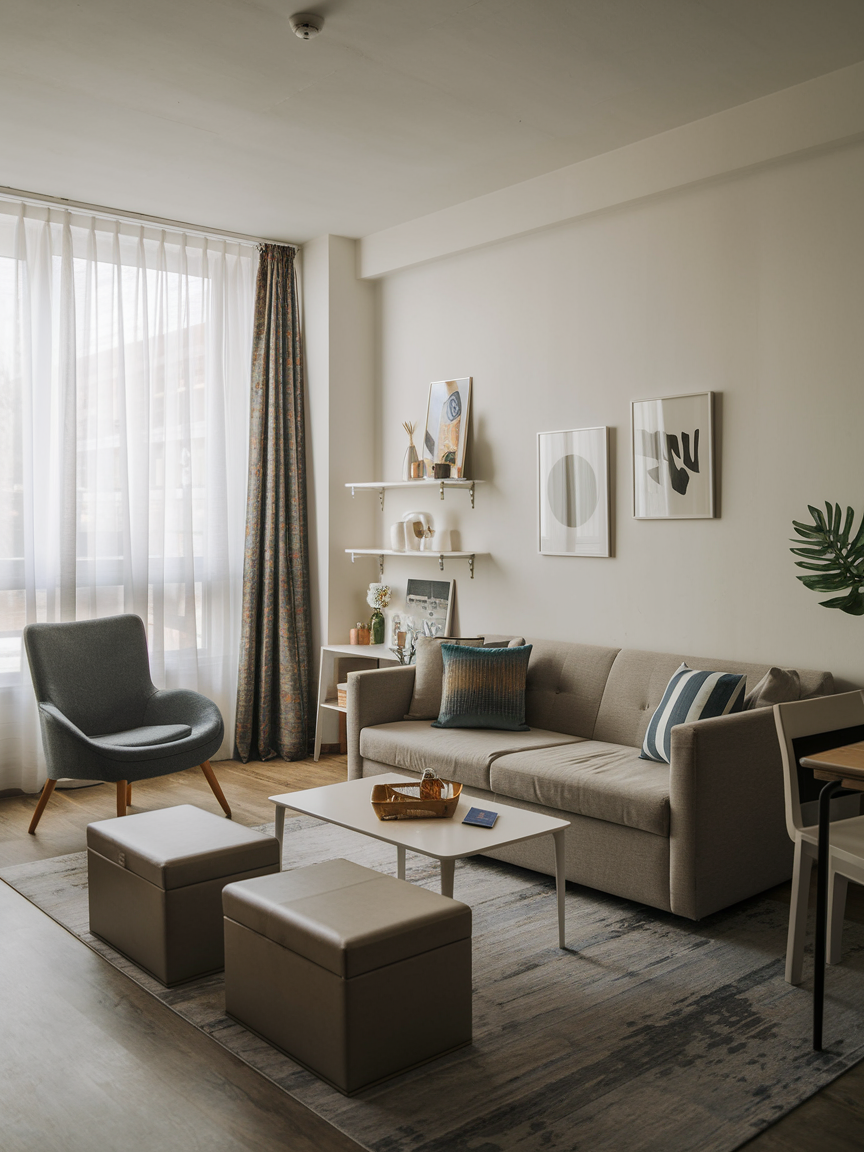 Investing in furniture that serves multiple purposes is a lifesaver in a small apartment. Think sofa beds, storage ottomans, or coffee tables with hidden compartments. These pieces maximize usability without cluttering the space. A sofa that doubles as a guest bed keeps your room cozy and practical, while storage ottomans hide blankets, magazines, or remote controls neatly. Multi-functional furniture keeps everything organized and accessible, making the living room feel thoughtful and intentionally designed. Comfort and style don’t have to compete when you choose smart, versatile pieces.