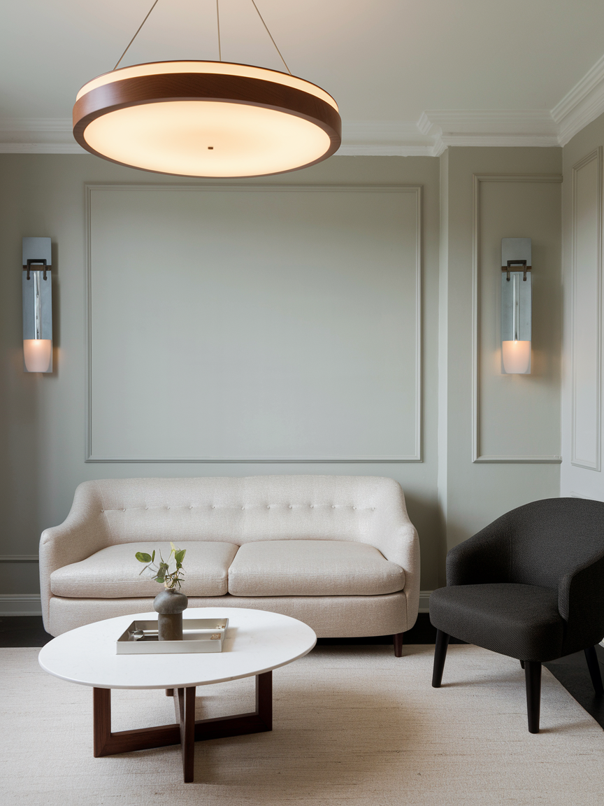 Lighting is both functional and decorative in a small living room. A striking chandelier, pendant light, or sculptural floor lamp draws attention upward, creating the illusion of height and space. Warm lighting enhances comfort, while adjustable fixtures let you highlight key areas, such as reading nooks or art pieces. Statement lights become a centerpiece, adding personality and flair to your apartment without occupying floor space. Carefully chosen lighting elevates the room’s style, creating a balanced atmosphere that feels sophisticated and inviting.