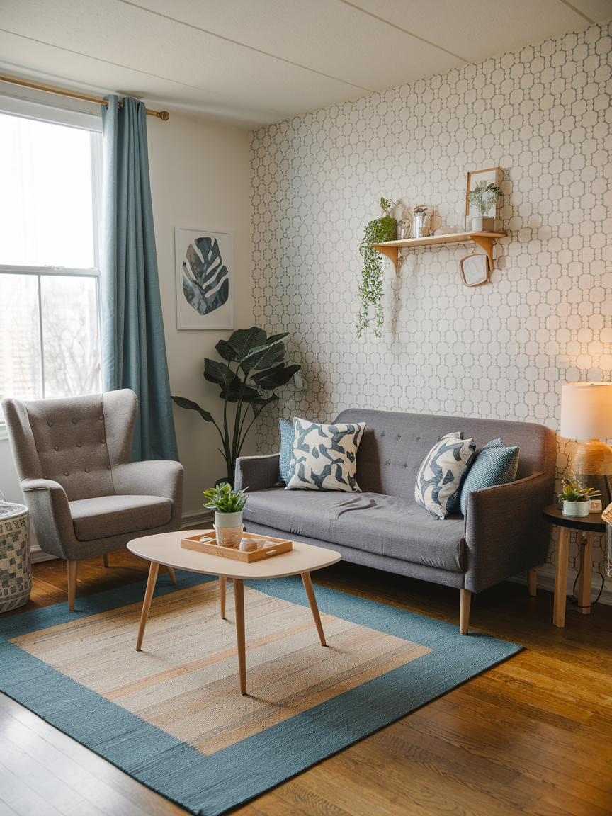 In small apartments, using area rugs to define different zones can make the layout more intentional. A rug under the seating area, for example, anchors furniture and adds warmth. Patterns and textures can introduce color and character without overwhelming the space. Layering rugs or using contrasting textures creates depth and separates functional areas visually. A well-placed rug ties your furniture together and gives your living room a cozy, polished feel.