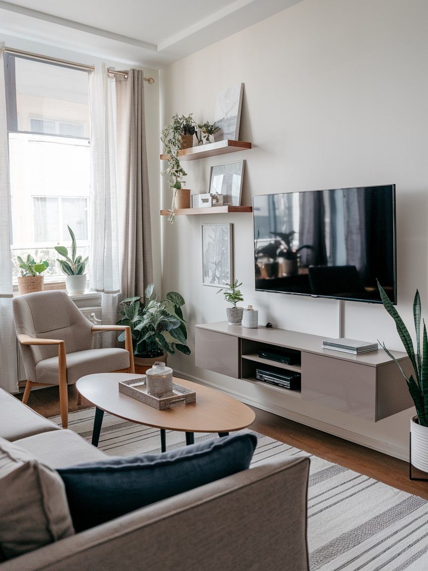 Mounting your TV on the wall instead of using a bulky cabinet saves floor space and creates a streamlined look. Pair it with floating shelves or a slim console to keep media essentials organized. Wall-mounted entertainment setups keep the room open and allow you to add decorative touches around the screen, making technology part of the design rather than dominating it. This approach balances functionality with aesthetic appeal, giving your small living room a clean, contemporary feel.