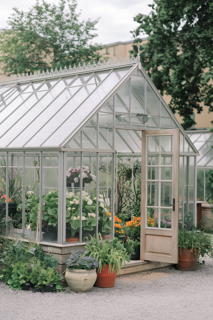 Add a touch of old-world charm to your garden with a Victorian-style greenhouse. These ornate structures often feature intricate ironwork, decorative glass panels, and high ceilings that create a stunning focal point in any yard. The generous height allows for better air circulation, while the stylish design elevates the aesthetic appeal of your garden. A Victorian-inspired greenhouse is perfect for growing delicate flowers, rare plants, and even small citrus trees in a controlled environment.