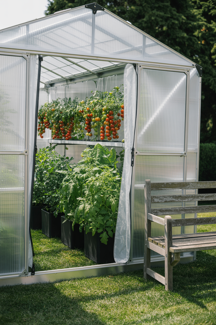 Polycarbonate panels provide a modern alternative to traditional glass greenhouses. These panels are lightweight, highly durable, and offer excellent insulation, helping to maintain consistent temperatures throughout the year. Unlike glass, polycarbonate diffuses sunlight to prevent scorching, creating a more balanced light distribution that benefits plant growth. Additionally, polycarbonate greenhouses are more impact-resistant, making them a safer option for households with children or pets. If you’re looking for a low-maintenance yet effective greenhouse, this design is a great choice.