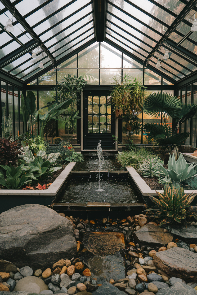 A greenhouse that incorporates a water feature, such as a small pond or fountain, adds a tranquil and visually appealing element to the space. The water helps regulate humidity levels while creating a soothing ambiance, making your greenhouse feel like a peaceful oasis. A koi pond or a miniature waterfall can even support aquatic plants, promoting a balanced ecosystem. This setup is perfect for those who want a greenhouse that doubles as a relaxing retreat while enhancing the health of their plants.