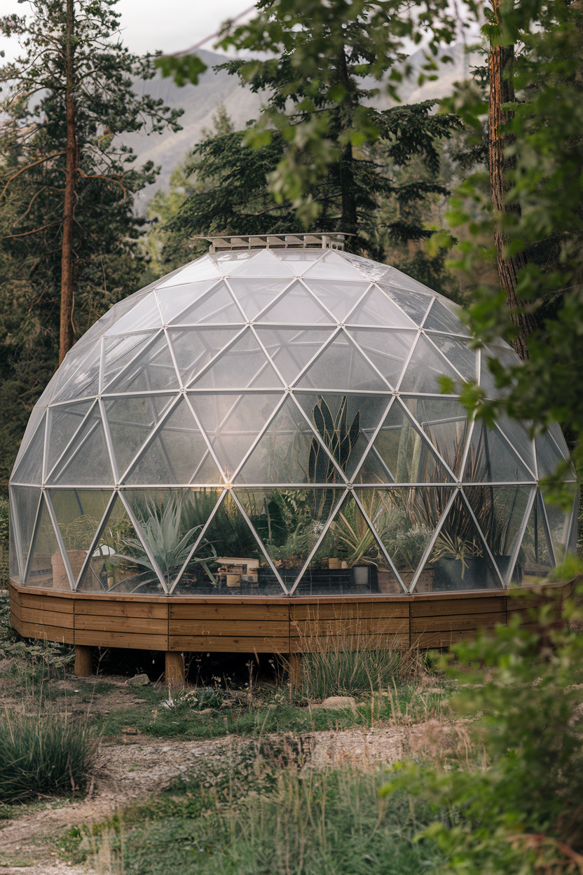 A geodesic dome greenhouse is a modern, innovative design that maximizes light exposure and energy efficiency. The dome structure distributes heat evenly, making it highly resistant to strong winds, heavy snow, and harsh weather conditions. Its unique shape allows for optimal air circulation, reducing the risk of plant diseases. Whether you want to grow vegetables year-round or create a tropical oasis in your backyard, this futuristic greenhouse design is both functional and visually stunning.