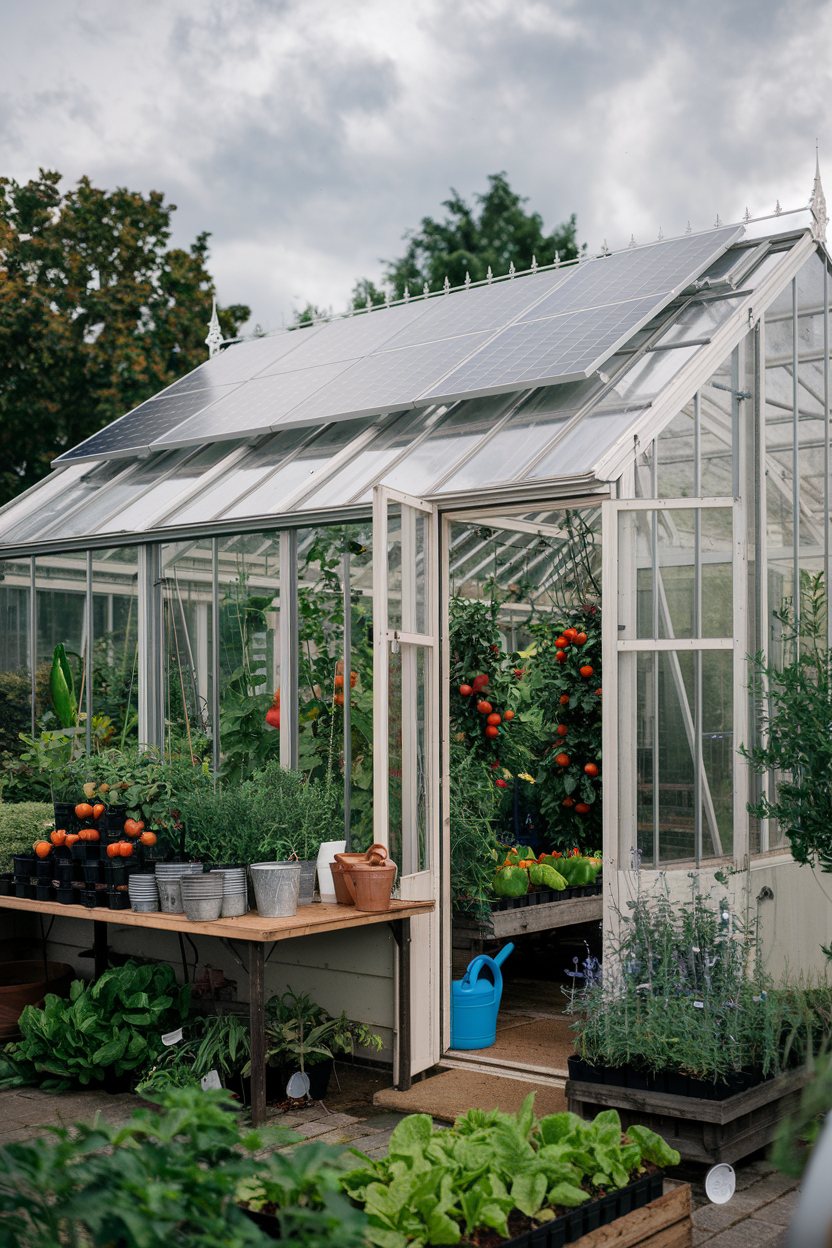 Harness the power of the sun with a solar-powered greenhouse, an eco-friendly solution that reduces energy costs while providing a self-sufficient growing environment. By integrating solar panels into the roof, you can generate electricity to power heating, ventilation, and lighting systems, ensuring optimal conditions for plant growth. This setup is ideal for those looking to reduce their carbon footprint while maintaining an energy-efficient garden throughout the year. A solar-powered greenhouse is a sustainable investment that pays off in the long run.