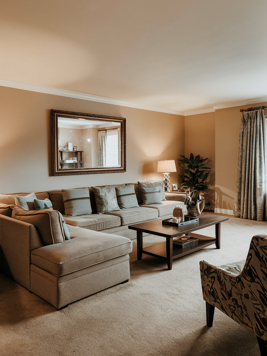 Neutral tones help unify the space and prevent visual clutter. Shades such as beige, soft taupe, and warm ivory reflect light gently while creating a calm backdrop for furniture and accessories. These colors blend seamlessly with different decor styles, allowing the room to feel cohesive and spacious. A neutral wall scheme also provides flexibility for adding subtle accents through textiles or artwork.