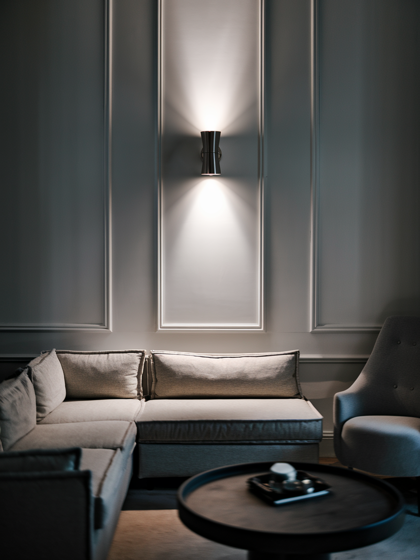 Wall-mounted lighting frees up valuable floor and table space while providing beautiful illumination. Adjustable reading lights or elegant sconces can highlight artwork and brighten darker areas of the room. Because they are mounted directly to the wall, they maintain a clean and uncluttered look. This combination of functionality and style contributes to a living room that feels both practical and spacious.