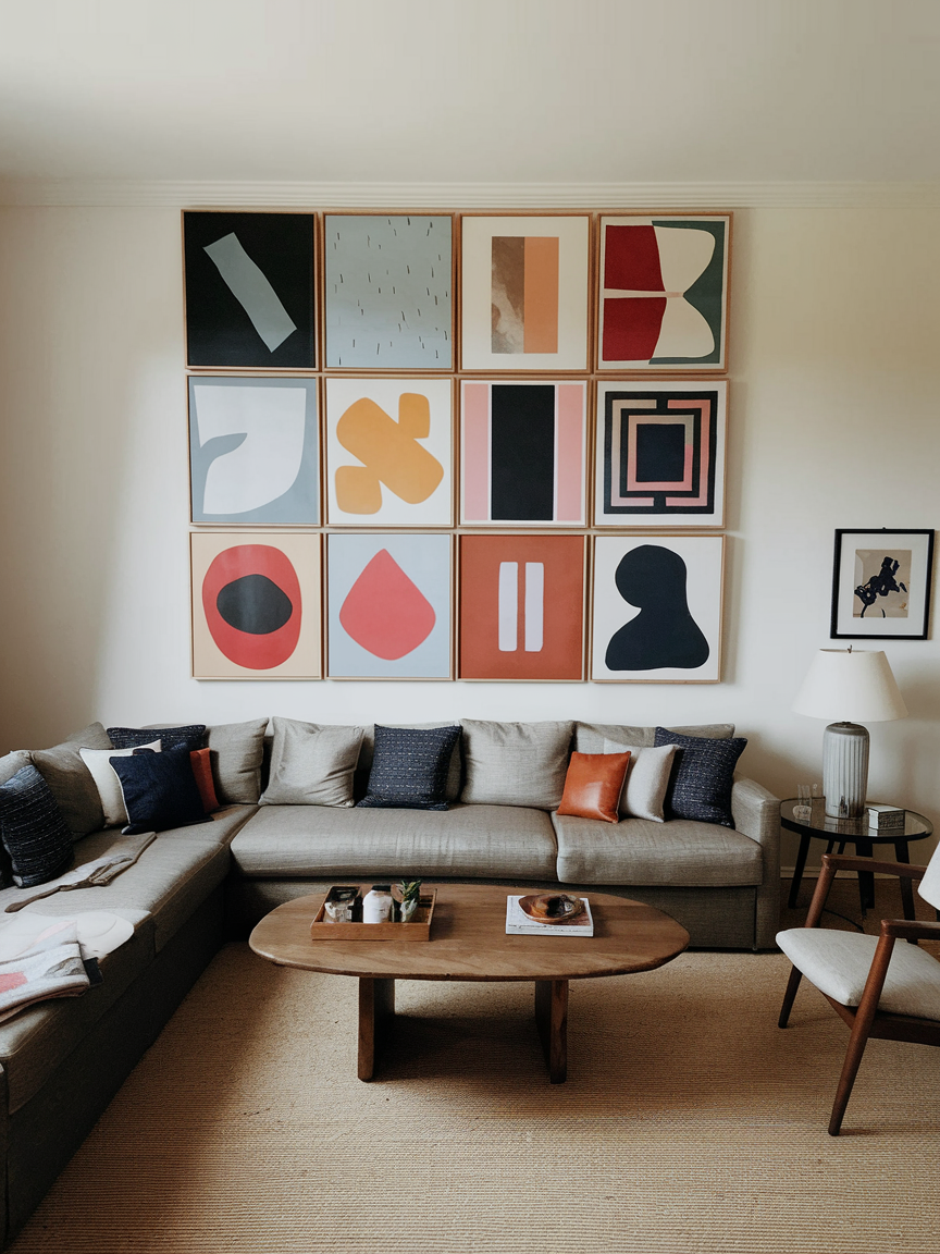 A grid-style gallery arrangement offers a structured and balanced approach to wall decor. By aligning artwork symmetrically, the wall appears organized and visually calm. This orderliness helps prevent the space from feeling chaotic or crowded. Using frames of similar size and color strengthens the cohesive effect. A grid display also encourages the eye to travel smoothly across the wall, enhancing the sense of openness.