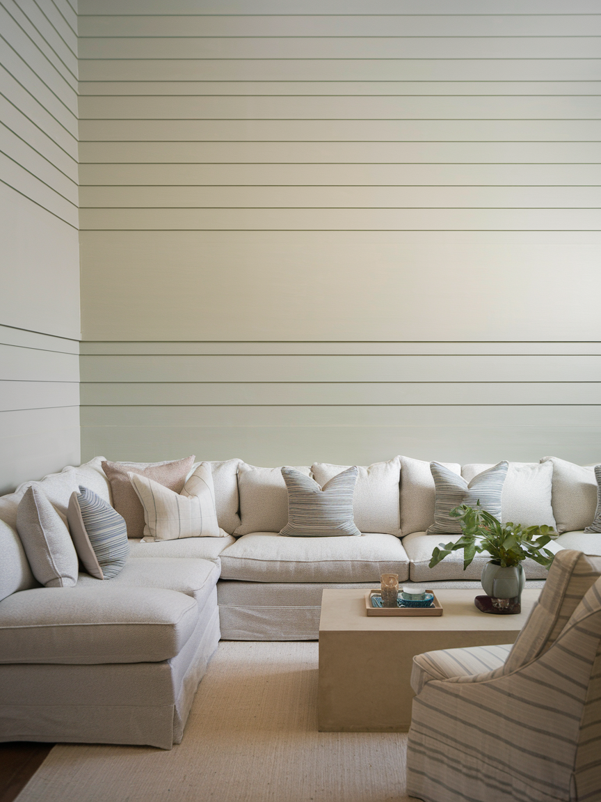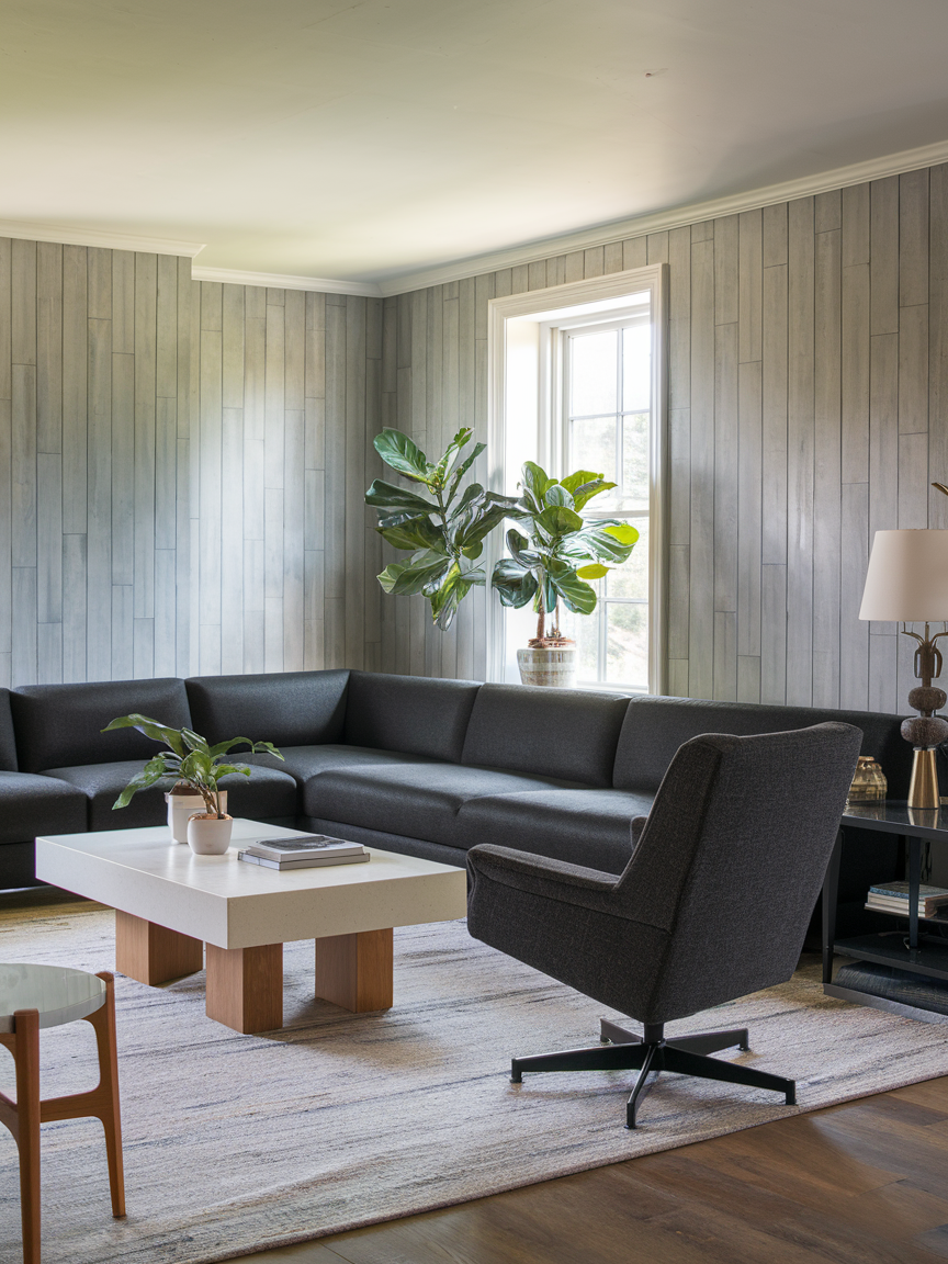 Vertical paneling is a clever design feature that adds both texture and height to a living room. Panels like shiplap or beadboard naturally draw the eye upward, which creates the illusion of taller ceilings. This makes the entire room feel more open and balanced. Light-colored paneling works particularly well because it reflects light while adding subtle architectural interest. Whether you prefer a rustic farmhouse look or a modern interpretation, vertical paneling introduces depth and dimension without overwhelming the space.