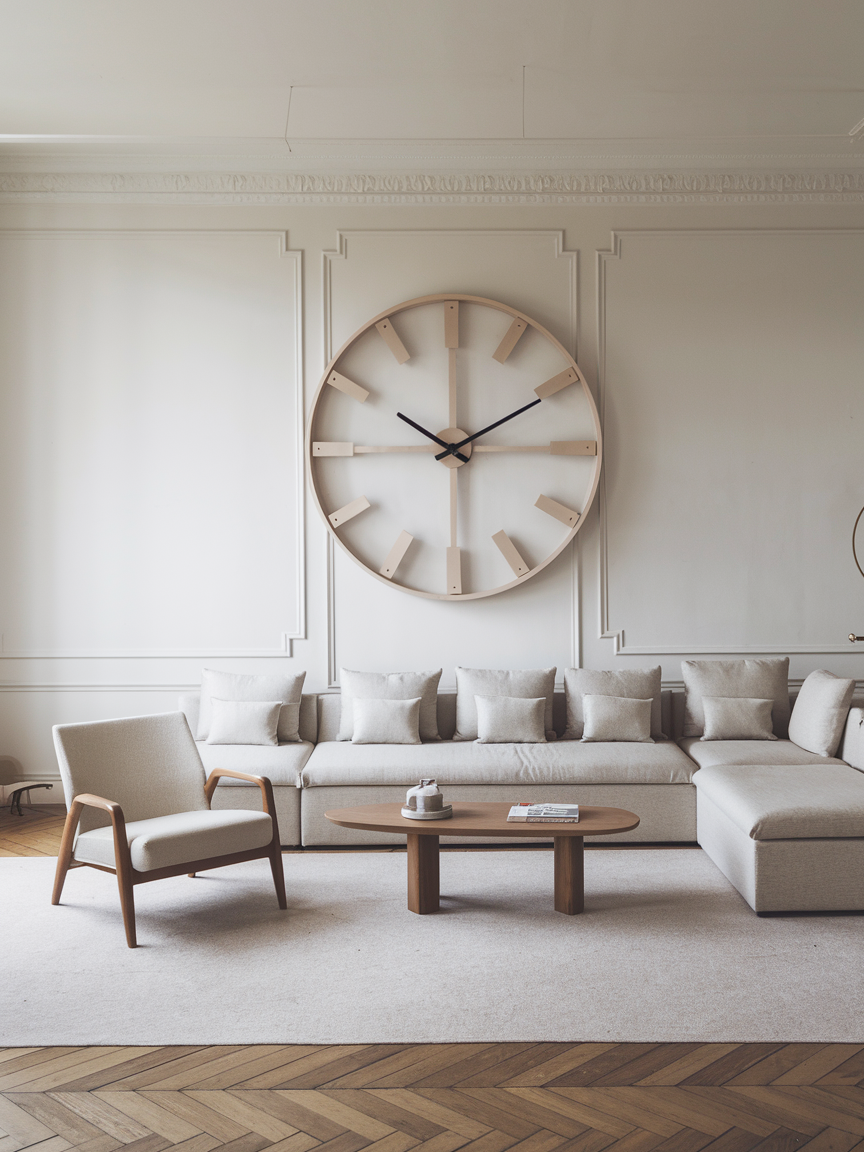 A minimalist wall clock can act as both decor and function without overwhelming the wall. Sleek designs with thin frames or metallic finishes add sophistication while maintaining a light visual presence. Positioned thoughtfully, a clock can become a subtle focal point that enhances the room’s style. Choosing a refined design ensures the decor remains elegant and uncluttered.