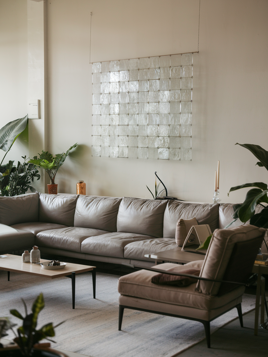 Decor made from glass or acrylic offers a beautiful way to decorate while maintaining visual lightness. Because these materials are transparent or reflective, they don’t visually block the wall behind them. This allows the eye to travel freely around the room, making the space feel more open. Acrylic frames, glass shelves, or translucent wall accents bring a modern and sophisticated touch while maintaining an airy atmosphere. These materials also help reflect light, subtly enhancing brightness.
