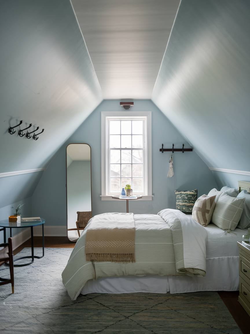 While neutral tones are ideal for attic bedrooms, adding subtle pops of color keeps the space lively. Think colorful pillows, a patterned throw, or small décor items. These accents provide visual interest and make the loft feel personal without overwhelming the calm, minimalist foundation. Pops of color draw the eye and give the room character, ensuring your hideaway feels playful and inviting. By using them strategically, you maintain the cozy, dreamy atmosphere while injecting personality and charm.