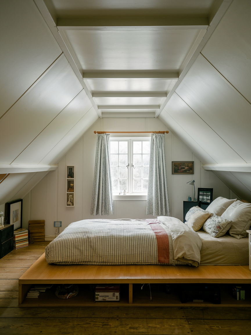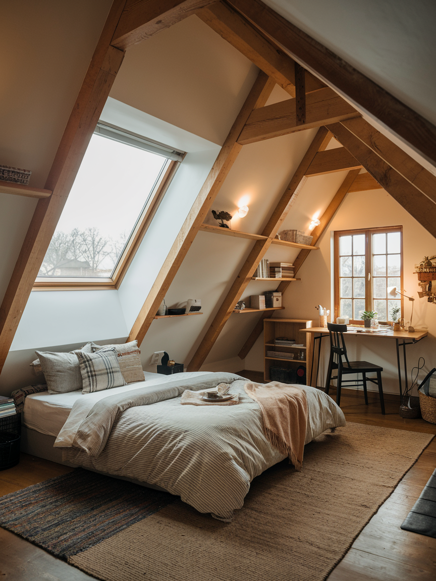 In attic bedrooms, space is limited, so multifunctional furniture is a lifesaver. Consider beds with built-in storage drawers, benches with hidden compartments, or foldable desks. Multifunctional pieces allow you to maintain a minimalist, organized environment while still having everything you need close at hand. They are particularly useful in lofts where floor space is tight, and every square foot counts. Smart furniture choices make the attic bedroom functional, stylish, and cozy without cluttering the space.