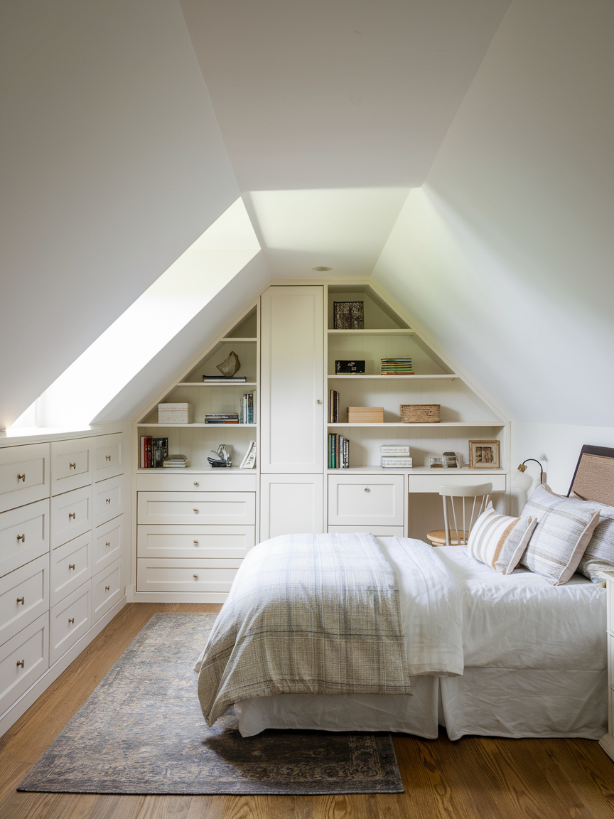 Attics often have awkward spaces that are tricky to furnish, which makes built-in storage a perfect solution. Custom cabinets, drawers, and shelving can fit under sloped ceilings and nooks, keeping your bedroom organized and clutter-free. This allows you to maintain a minimalist aesthetic while maximizing functionality. Built-ins also feel seamless with the architecture, making your attic bedroom look intentional and stylish rather than cramped or chaotic.