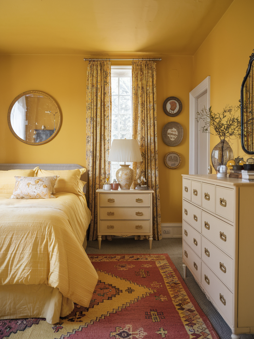 23. Vintage-Inspired Yellow Bedroom
