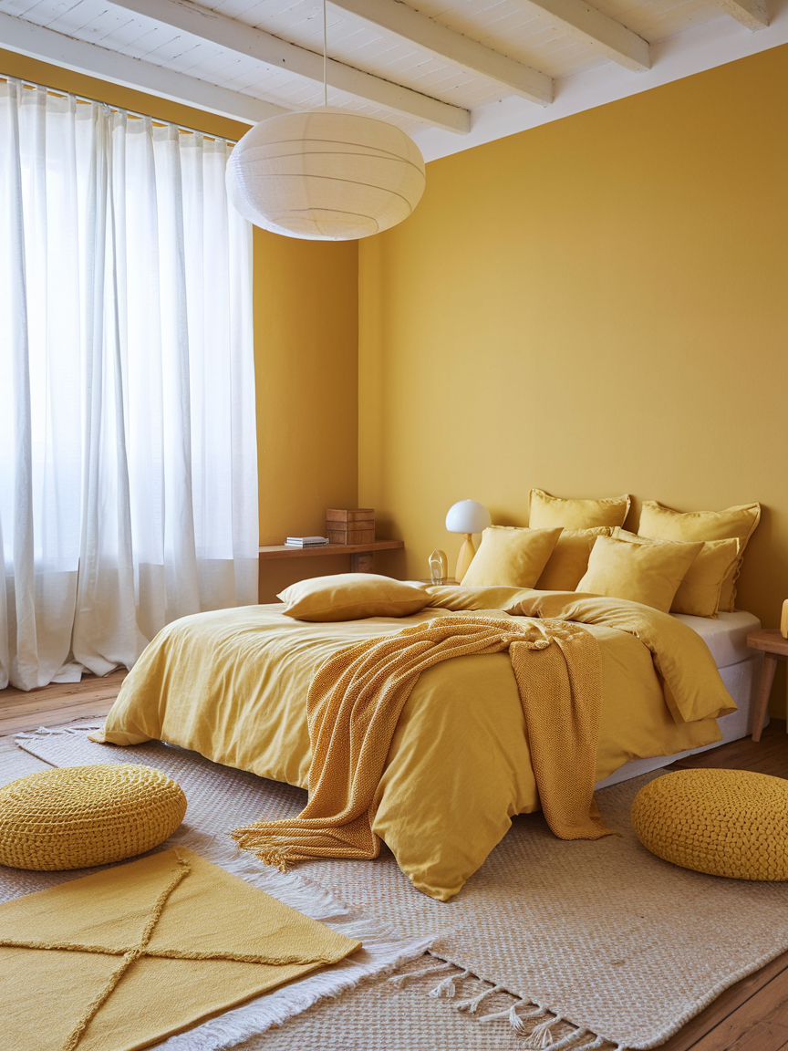 * In the end, the goal is to design a space that not only looks beautiful but also feels good to spend time in every day. Let your personality guide your choices, and don’t be afraid to experiment with different shades and styles until it feels just right. A well-designed yellow bedroom has the power to turn everyday moments into something a little more joyful, creating a space that truly welcomes you home.