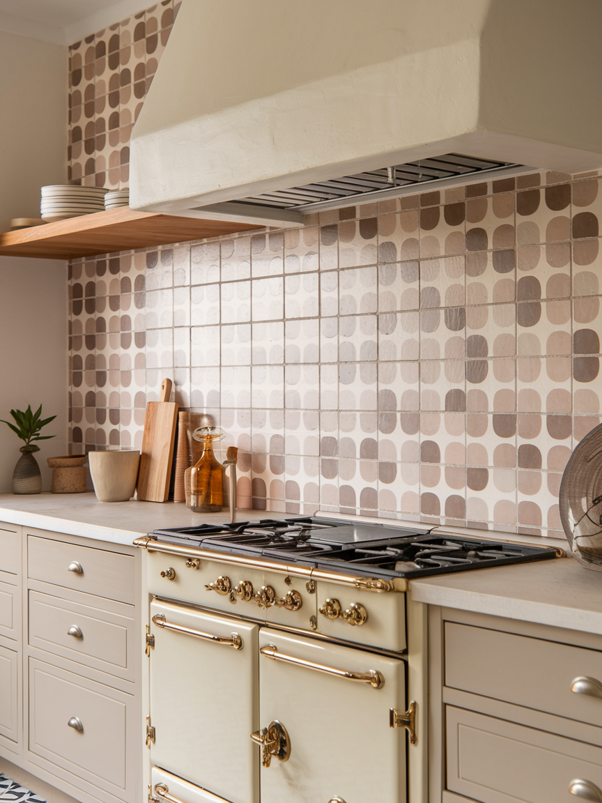 Neutral patterned tiles add subtle personality and texture without overwhelming the design. Soft geometric motifs, faded vintage patterns, or tonal designs in shades of beige, gray, or warm white create visual interest while maintaining a calm palette. These tiles work beautifully for backsplashes or flooring, adding character while still feeling modern and timeless. The gentle variation in pattern helps break up large surfaces and prevents the space from feeling flat. When paired with simple cabinetry and natural materials, patterned tiles enhance the layered look that defines modern boho style. This design choice offers a balance of elegance and creativity, making the kitchen feel unique yet cohesive.