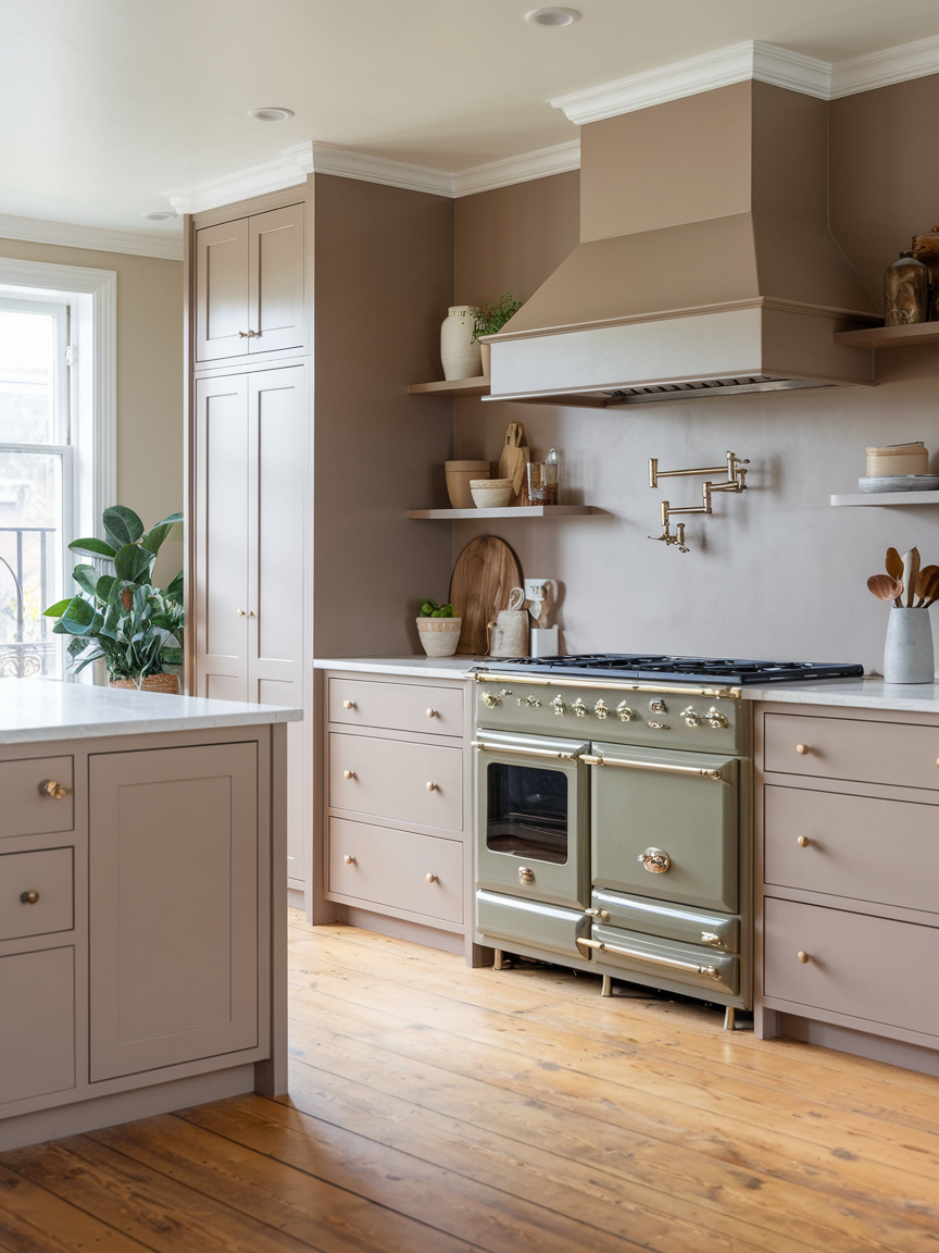 Subtle color blocking introduces depth without relying on bold contrasts. Using slightly different tones of the same color for cabinetry, walls, or islands creates a gentle variation that feels modern and sophisticated. For example, a soft beige wall paired with a slightly darker taupe island adds dimension while maintaining a calm palette. This technique helps define different zones within the kitchen and prevents the design from feeling flat. Keeping the colors muted ensures the space remains cohesive and aligned with the natural, relaxed feel of modern boho style.