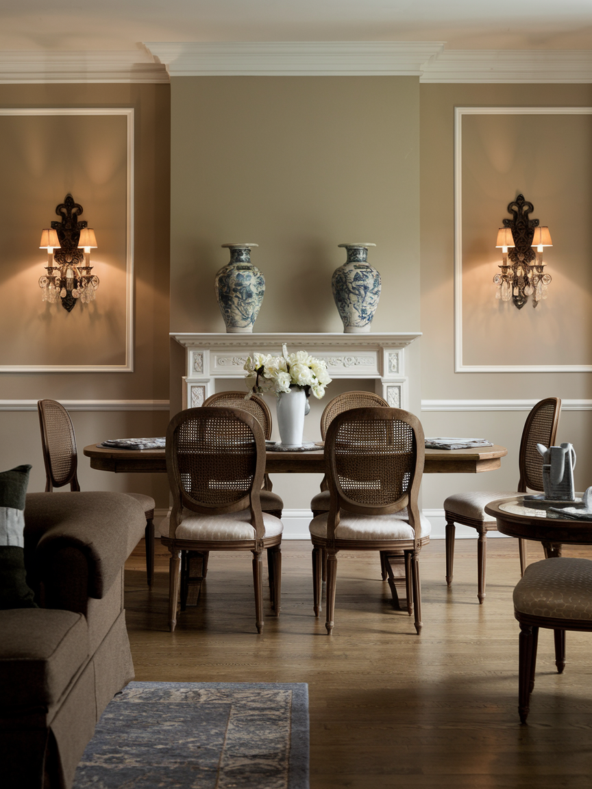 * A traditional dining room is not only about furniture or decoration, but about creating a space where people feel comfortable gathering together. With warm colors, classic details, and thoughtful design, the room becomes a place for conversation, celebration, and everyday moments. When a dining room feels welcoming and elegant at the same time, it naturally becomes the heart of the home.
