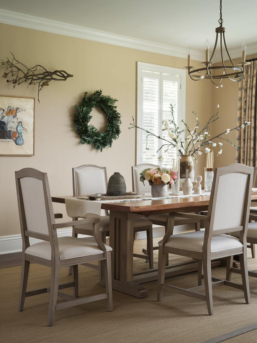 Updating decorations with the seasons is a simple way to keep a traditional dining room feeling fresh without changing the entire design. Because traditional interiors use timeless furniture and colors, they work beautifully with different seasonal accents. In spring, fresh flowers and light fabrics can brighten the room, while autumn decorations like pumpkins or warm tones make the space feel cozy. During winter, greenery, candles, and soft lighting create a festive atmosphere, and in summer, lighter centerpieces and natural elements keep the room feeling airy. These small changes keep the dining room interesting throughout the year while still maintaining the classic, elegant style that makes traditional design so special.