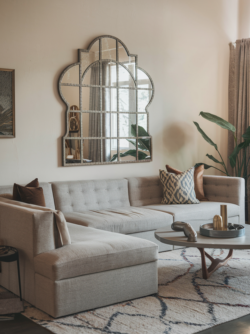 Mirrors don’t just serve a functional purpose, they can also double as striking art pieces. A large, decorative mirror with a unique shape or frame can serve as the focal point of the room, adding both style and depth. By placing mirrors strategically on the walls, you can reflect other design elements in the room, making the space feel more dynamic and spacious. The reflective surface will also bounce light around the room, creating a sense of brightness and opening up the space visually. For maximum impact, choose a mirror with an interesting design or an oversized piece to make a statement.