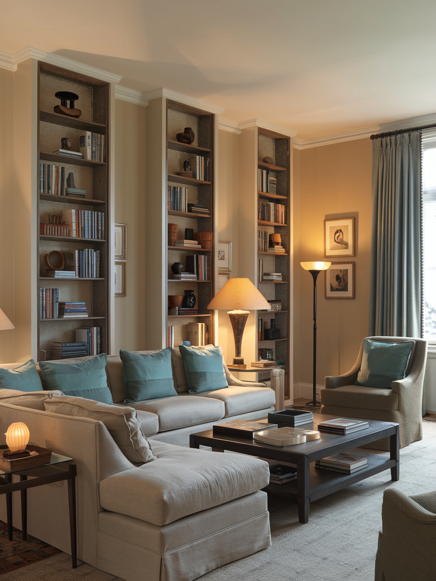 Wall-mounted lighting, such as sconces or adjustable reading lights, not only provides functional illumination but also saves space on the floor. By freeing up table and floor space, you create a more open environment in the living room. Wall-mounted lighting also offers the opportunity to highlight artwork or architectural features, helping to create focal points without adding clutter. Additionally, consider using dimmable wall sconces that can adjust the mood and lighting intensity, making the room feel both spacious and cozy depending on the time of day.
