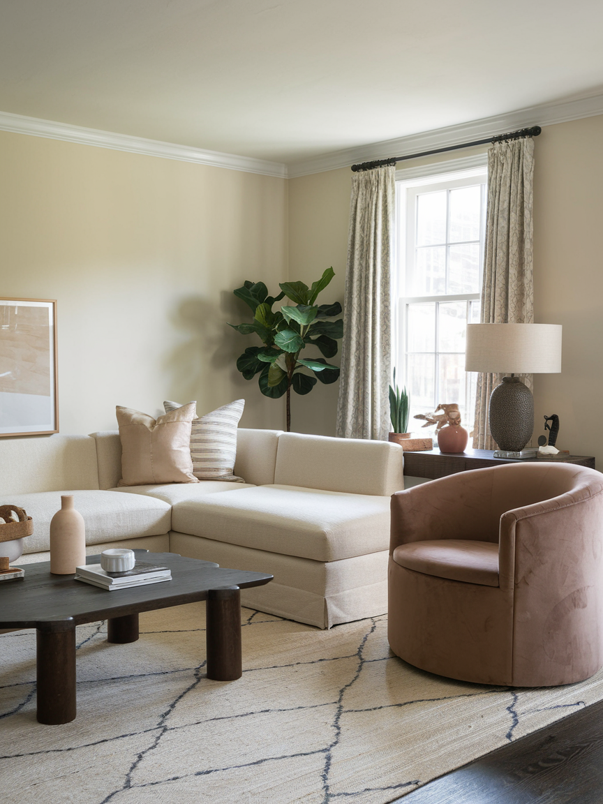 Neutral color schemes, such as beige, soft taupe, and off-white, can significantly expand a small living room. These colors act as a blank canvas, reflecting natural light and making the space feel airy and open. They also make a room feel calm and serene, helping to reduce visual clutter and distractions. You can pair neutral walls with pops of color through accessories like throw pillows, rugs, or small accents to keep the space from feeling too sterile. The key to achieving a spacious feel is the seamless transition between the neutral walls and the other design elements in the room.