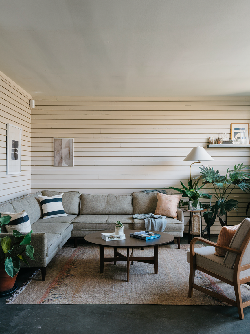 Vertical paneling, such as shiplap or beadboard, is an excellent way to add visual interest and depth to the walls of a small living room. The vertical lines naturally draw the eye upward, making the ceiling appear higher and creating a sense of height. This effect is particularly helpful in rooms with low ceilings, where you want to open up the vertical space. Shiplap adds a rustic, textured look that enhances the overall aesthetic while making the room feel more open and airy. Consider painting the paneling a light color to enhance the sense of space even further.