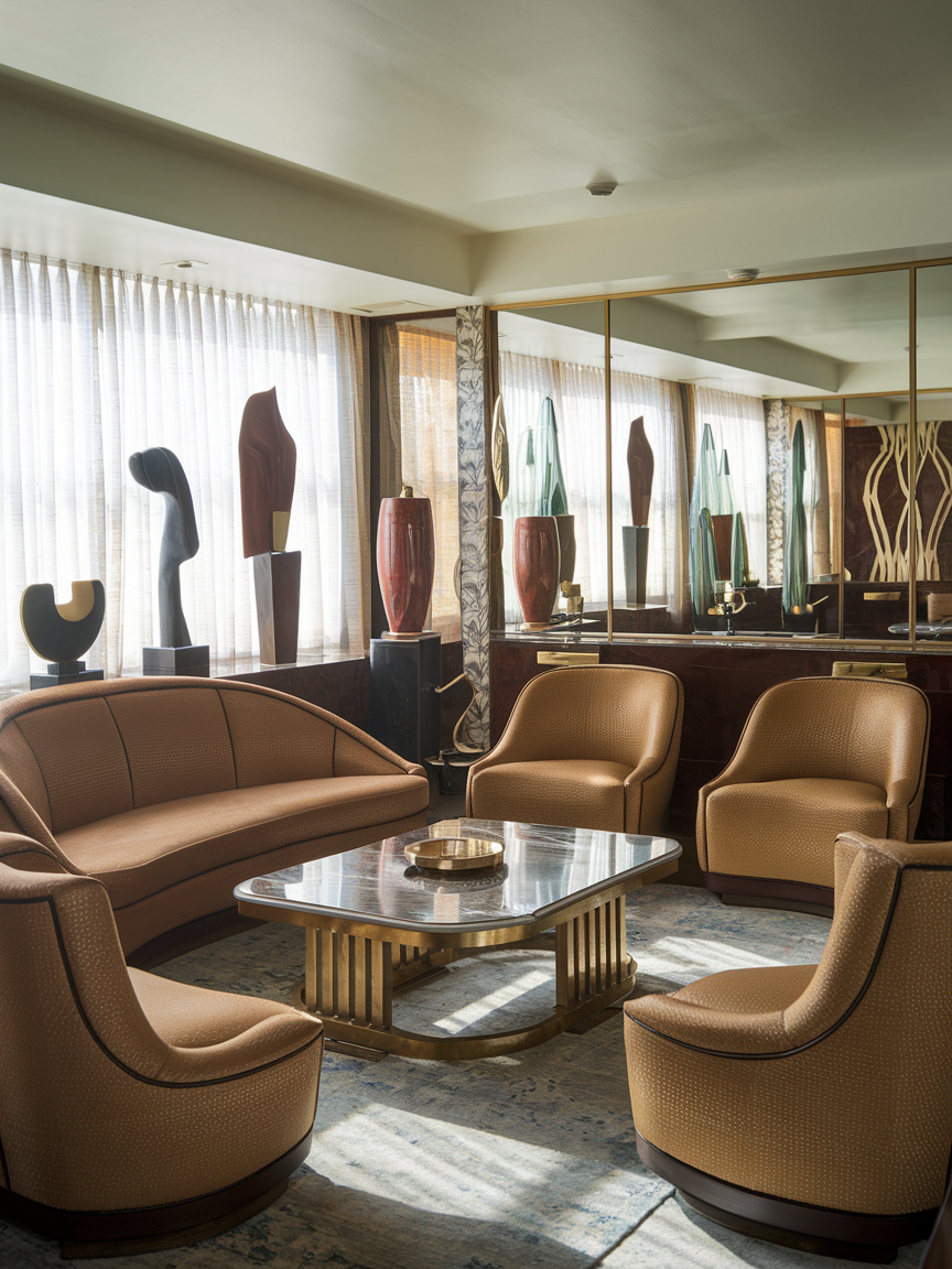 The true essence of an Art Deco living room lies in balance and thoughtful curation. Focus on symmetry, quality materials, and a cohesive color palette rather than overcrowding the space with decorative items. Allow statement pieces to stand out while maintaining open areas that give the room a sense of calm and elegance. Mixing bold elements with softer textures ensures the space feels luxurious yet comfortable for everyday living. When designed with intention, the result is a living room that feels both timeless and effortlessly sophisticated.