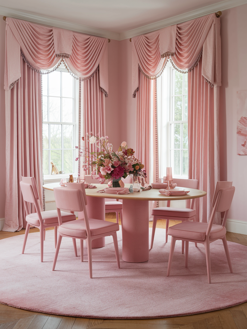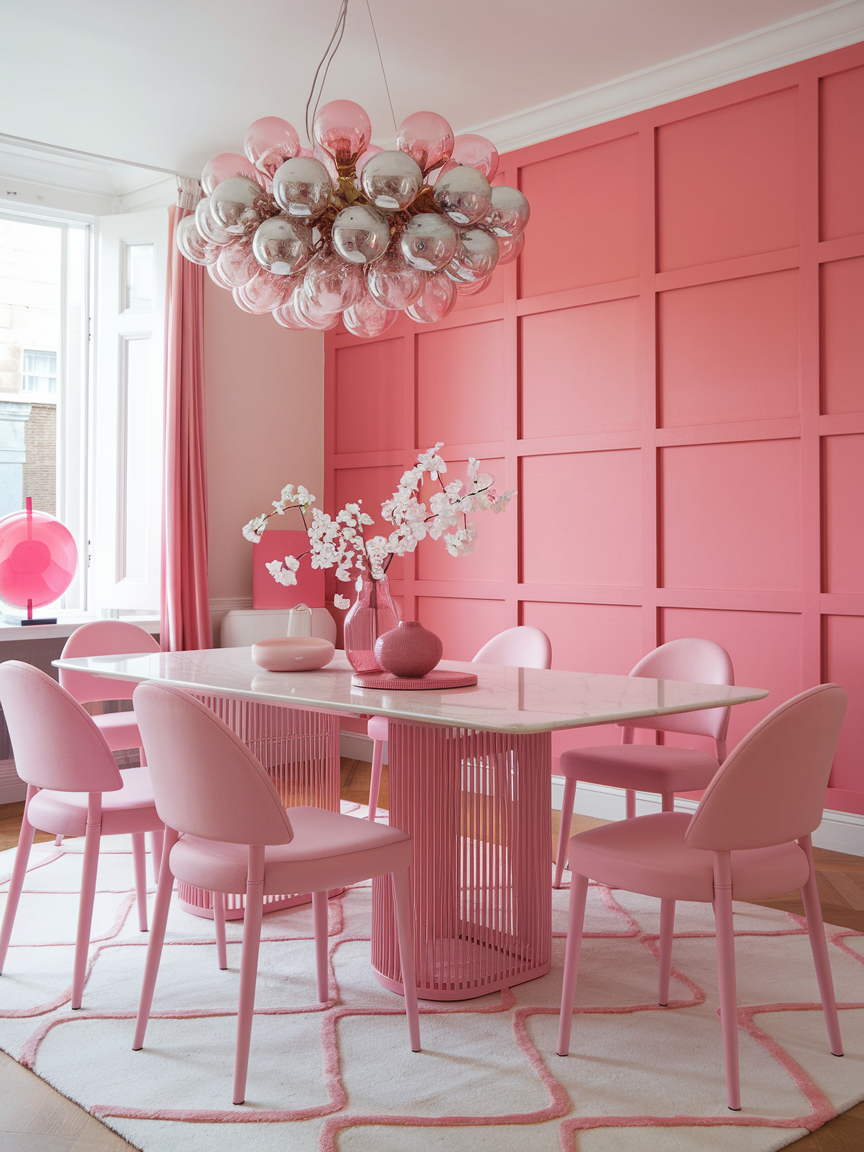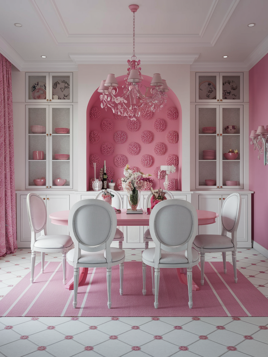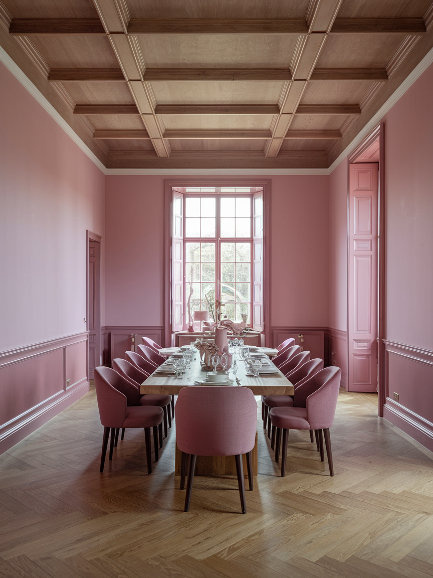 A pink dining room brings a sense of brightness, warmth, and cheerful elegance into one of the most social spaces in the home. This versatile color can range from soft blush tones that feel light and calming to richer shades that add depth and personality. Thoughtful use of pink can instantly uplift the atmosphere, creating a dining area that feels both welcoming and visually refreshing.