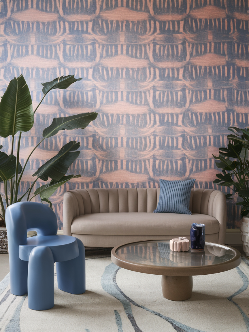 Patterned wallpaper is one of the quickest ways to create a fun and stylish accent wall. Choose designs featuring abstract shapes, botanical prints, or modern motifs to add personality and visual texture to your living room. Peel-and-stick options make it easy to experiment without long-term commitment. A playful pattern works best when balanced with simple furniture and neutral accessories to prevent the space from feeling overwhelming. This type of accent wall is especially effective behind a sofa or as a backdrop for a gallery display. Soft color palettes keep the look sophisticated, while bold prints add energy and creativity. Wallpaper also introduces depth and detail that paint alone cannot achieve. This idea is ideal for anyone who wants an instant transformation that feels lively, stylish, and full of character.