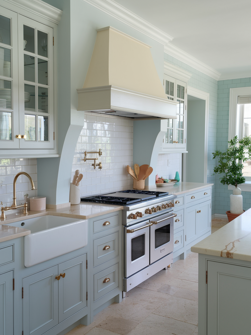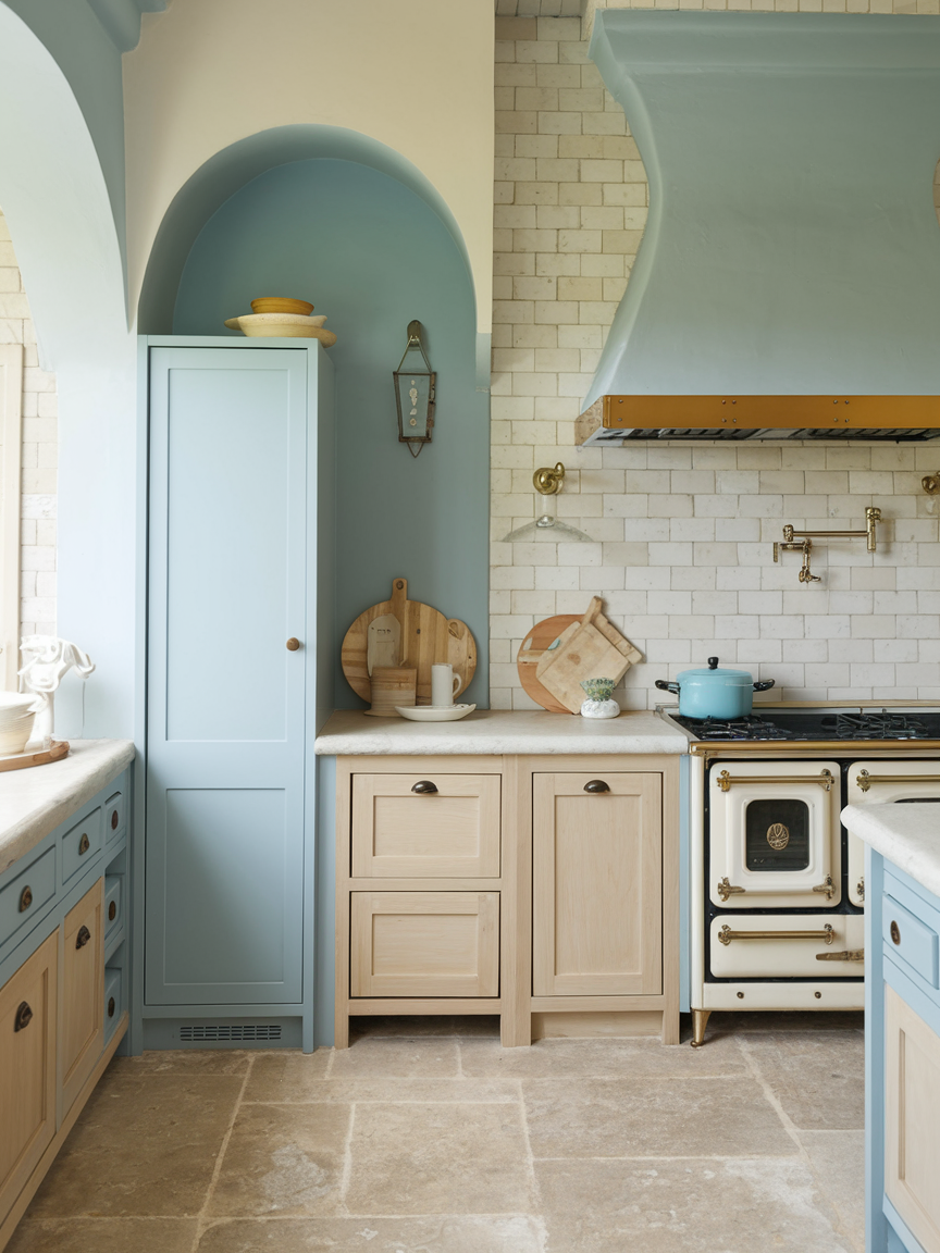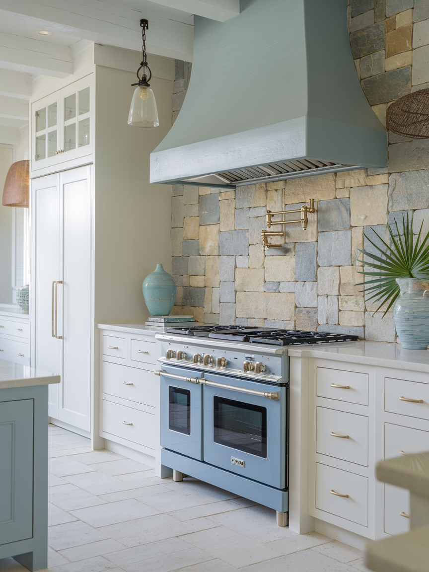Incorporating natural stone, such as marble, limestone, or travertine, adds texture and timeless elegance. These materials bring organic variation and subtle movement into the space. Whether used for countertops, backsplashes, or accent walls, stone enhances the kitchen’s connection to nature. Its soft, neutral tones blend seamlessly with coastal palettes. Natural stone adds a sense of authenticity and refinement, elevating the overall design while keeping it grounded and approachable.