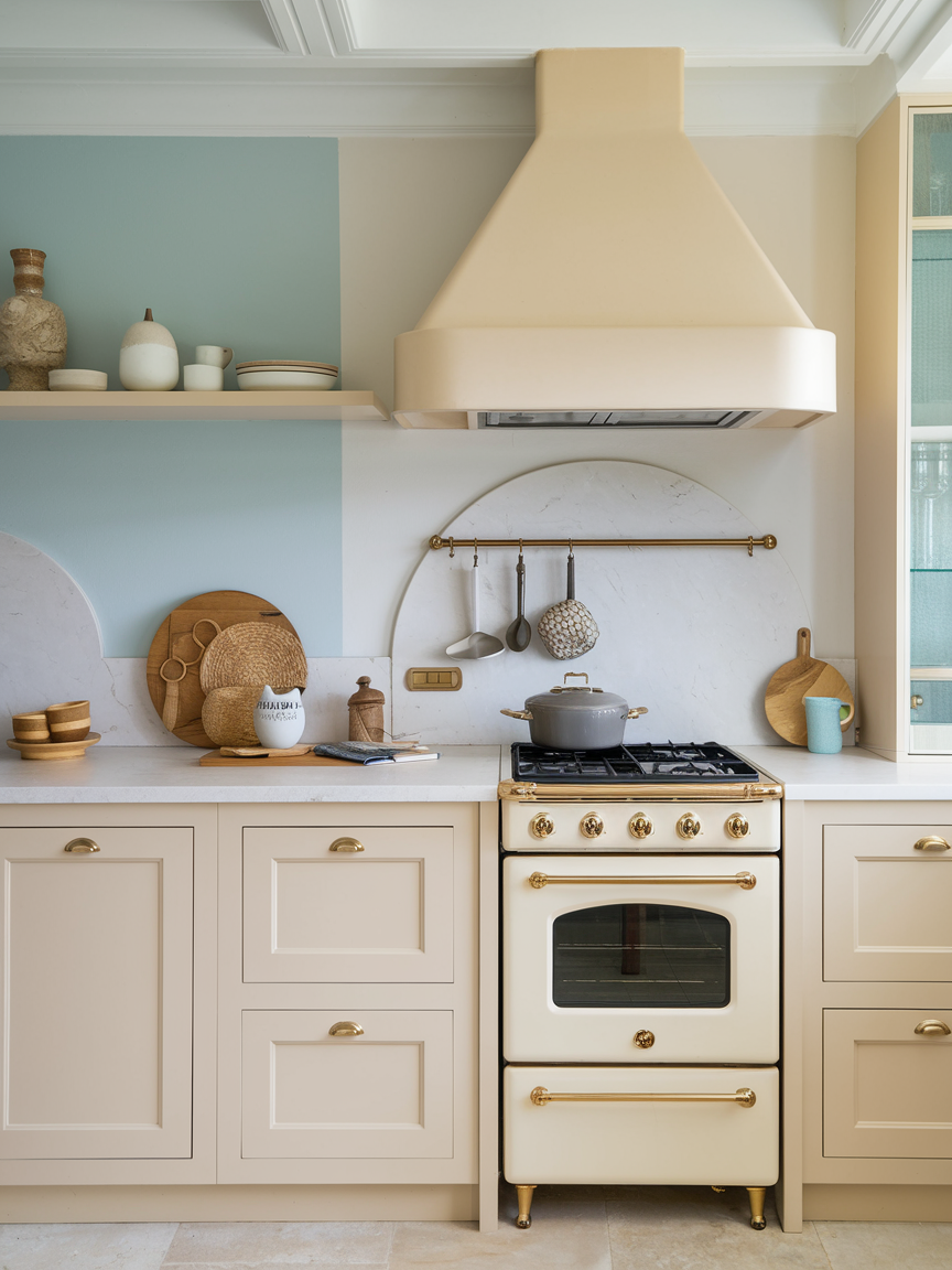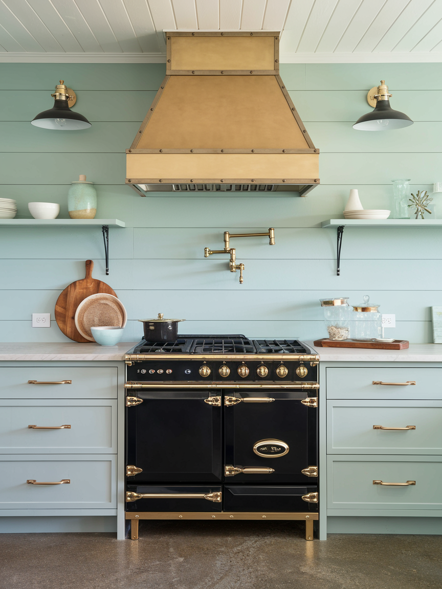 Soft metallic finishes like brushed brass or champagne gold introduce a hint of luxury without overpowering the design. These accents can appear in lighting, hardware, or décor. When used sparingly, they catch the light beautifully and add warmth. Metallic details elevate the kitchen’s sophistication while maintaining its relaxed coastal charm.