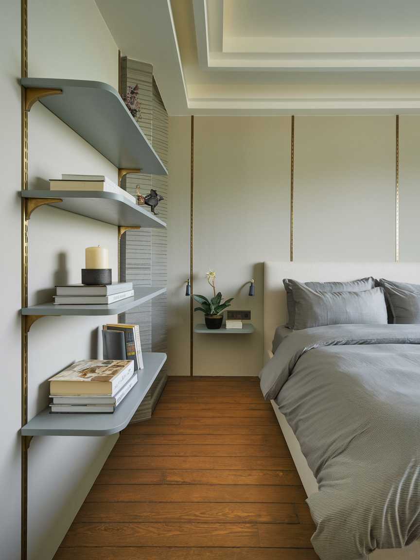 Floating shelves are a modern and practical way to add both storage and decorative space without making the room feel crowded. Their streamlined design keeps the wall looking light and uncluttered while providing room for books, plants, candles, or small decorative objects. In smaller bedrooms, floating shelves are especially useful because they free up floor space and help maintain an open feel. Styling them with a mix of textures and varying heights creates a balanced and visually appealing arrangement. Choosing finishes that match your furniture or color palette ensures the shelves blend seamlessly into the design. This trend combines function and style, helping your bedroom stay organized while enhancing its overall aesthetic.